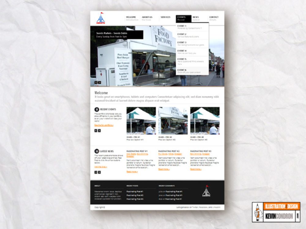 Brief: Design a full brochure web site to market ‘ALA Events’. Web site to include event listings with details and google maps.