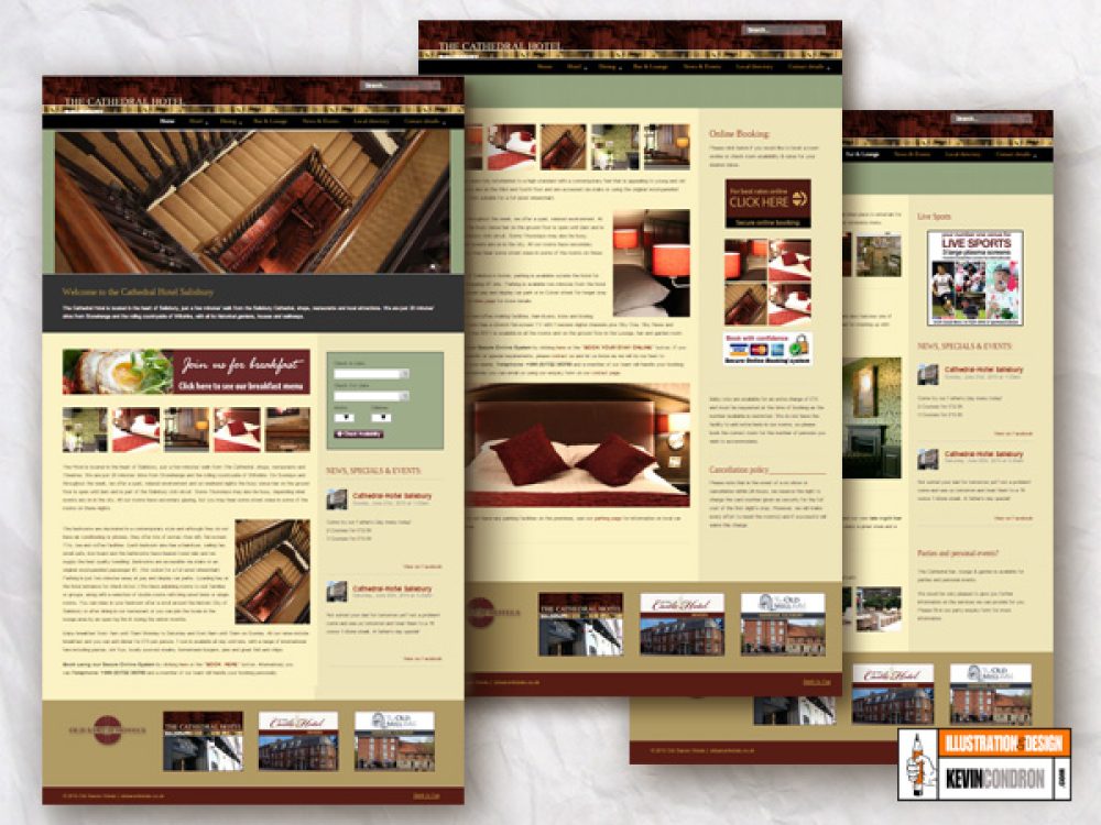 Brief: Redesign a full brochure web site to market ‘The Cathedral Hotel’ in Salisbury, UK. Redesign an updated version of the current html website, as their current website was looking a little dated and needed to be responsive for new devices. The website to include links to their booking system and menus. Also a news feed from their facebook page that they will update.