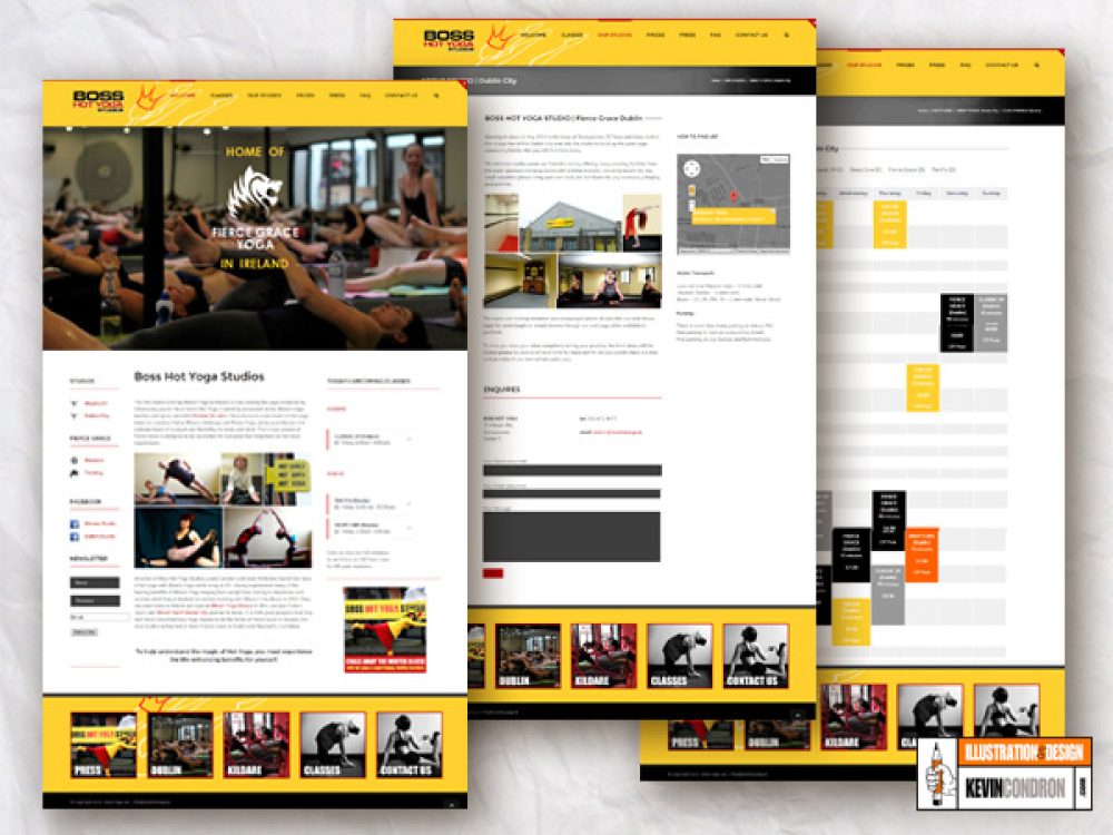 Brief: Design a full brochure web site to market ‘Boss Hot Yoga Studio’ in Dublin and Kildare. Web site to include a class schedule and news section for each studio.